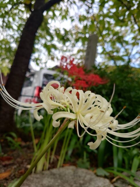 この季節には、秋の風景がたくさん見られる美山には、毎年、訪れます。 畑には夏はひまわり畑だったところが、今は蕎麦畑になっており、白い花が咲いています。 道端には彼岸花やコスモス、そのほか秋の花が多く見られます。 青空に日...