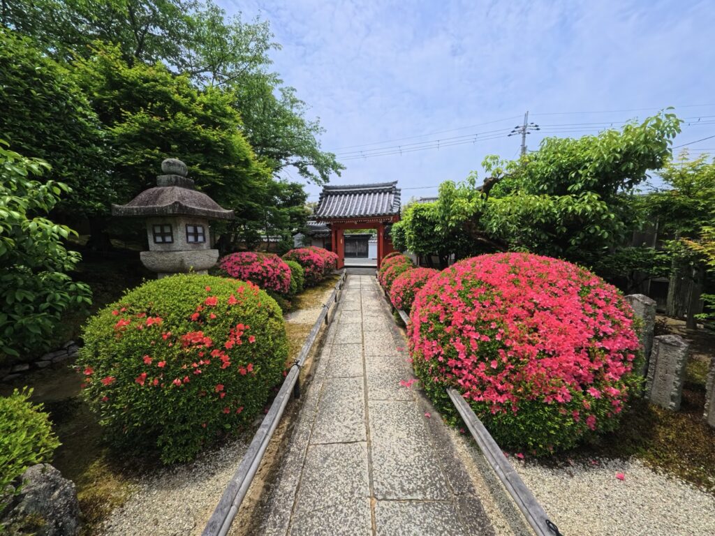 おでかけ京都2025年6月13日栄摂院とさつき 栄摂院(えいしょういん)は京都市左京区にある浄土宗大本山・金戒光明寺の塔頭寺院で、1589年に徳川家康の家臣・木俣守勝によって創建されました。本堂や庫裏など江戸時代初期の建物が残り、境内には池泉庭園や白砂の枯山水庭園が広がります。特に秋の紅葉が美しく、例年秋に特別公開される隠れた名所です。境内では5月中旬から6月上旬にかけてさつき(皐月)が咲き、初夏の静かな庭園に彩りを添えます。2025.6.3