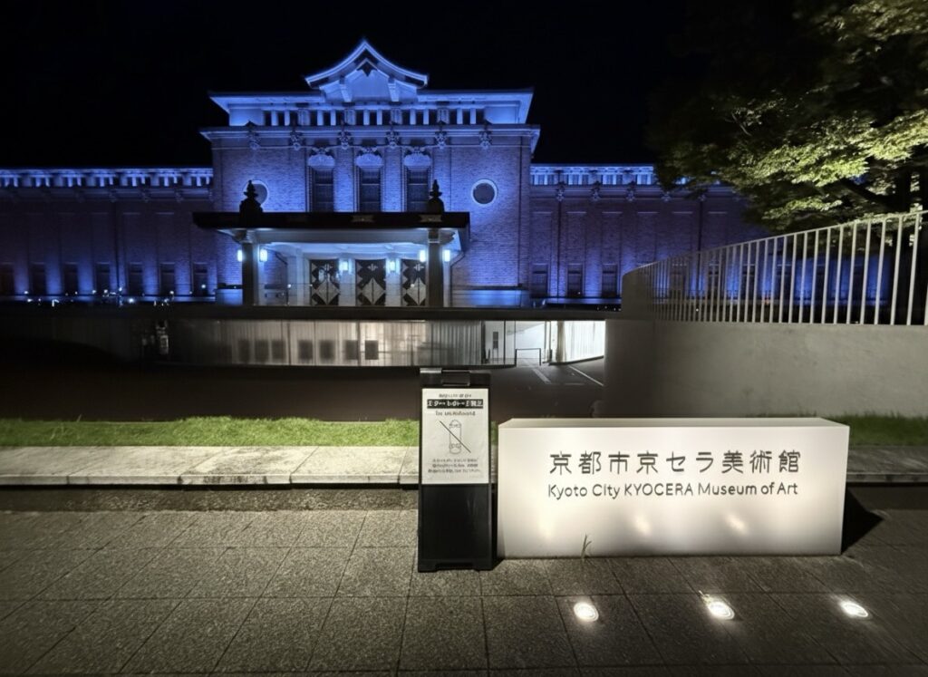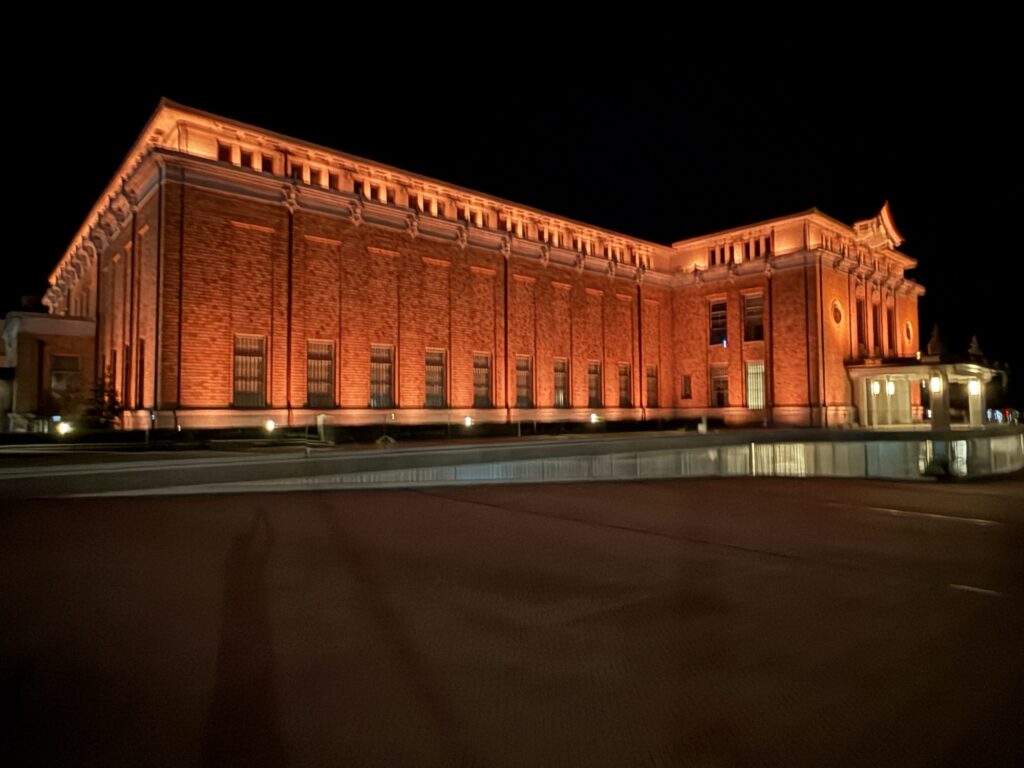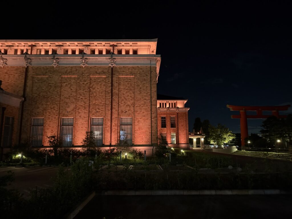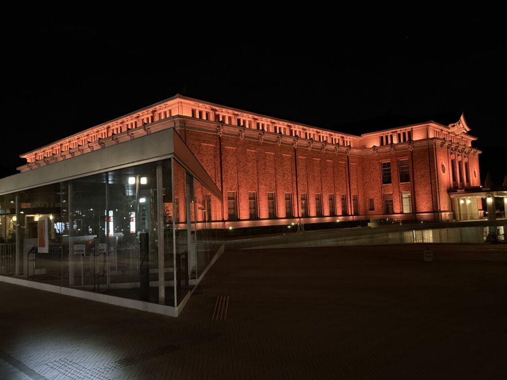 京都市内では9月21日は認知症の日ということで、京都市役所と京セラ美術館が赤いライトアップに。。