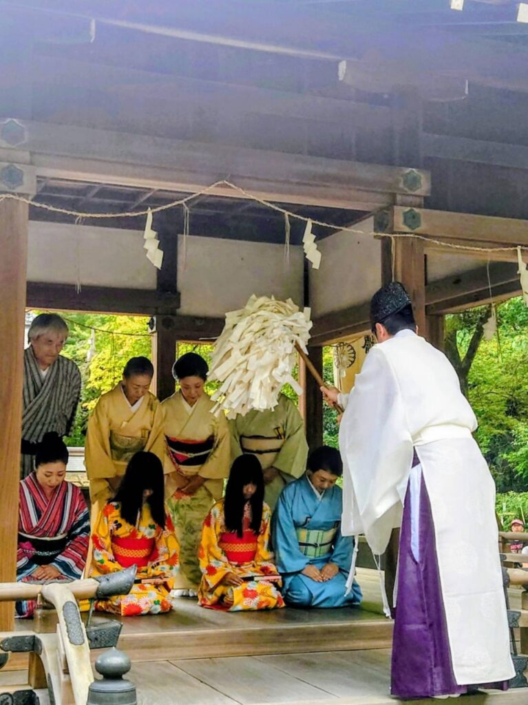 おでかけ京都2025年10月4日梨木神社 萩まつり 梨木神社の萩まつりは、毎年9月下旬に開催される秋の風物詩です。 社殿へ続く参道の両脇に約500本の萩が見頃を迎える中、神事や舞踊、弓術、狂言など多彩な奉納行事が行われます。献詠された俳句や短歌の短冊が萩の枝に結ばれるほか、お茶席も設けられ、伝統文化と美しい萩の花が楽しめます。 2025.9.28