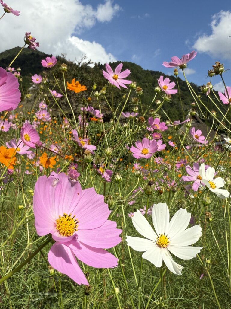 道端には彼岸花やコスモス、そのほか秋の花が多く見られます。