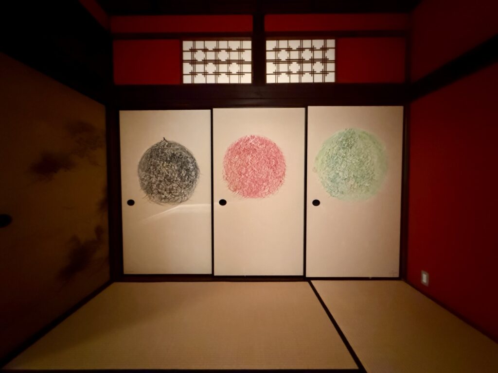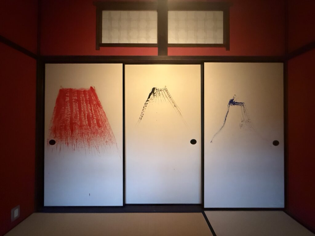 日新庵内にある富士山と五葉松の襖絵が魅力的でした。