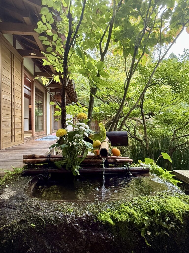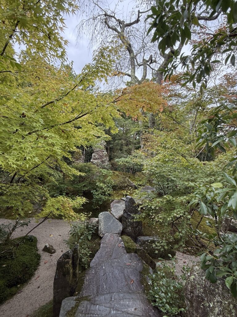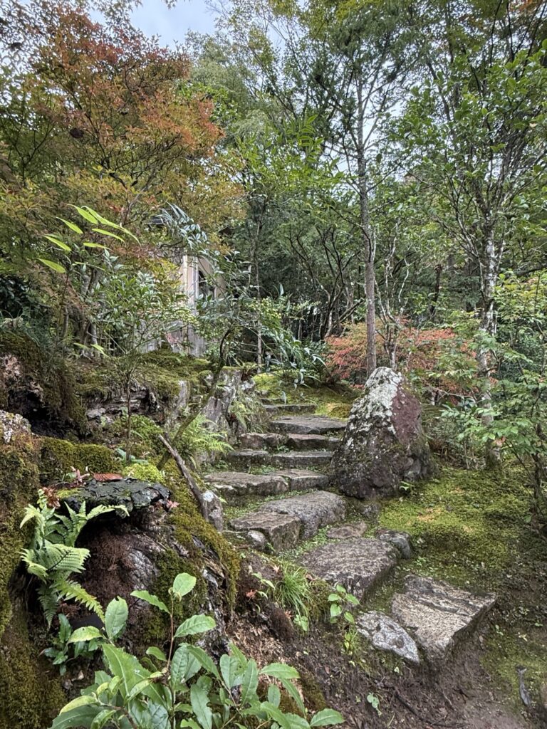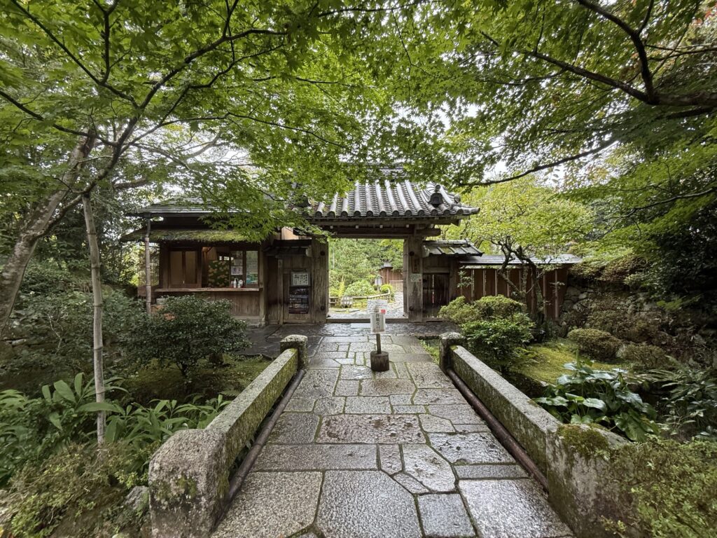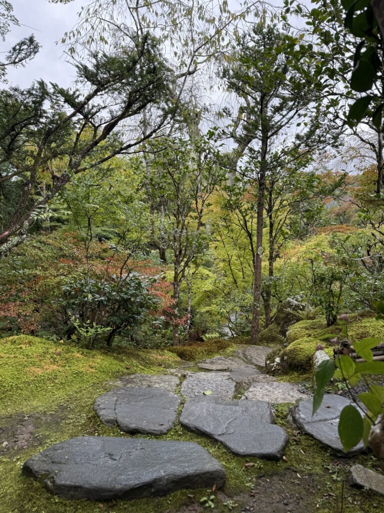 京都・大原の宝泉院は、書院の柱を額縁に見立てて眺める「盤桓園(ばんかんえん)」が有名で、樹齢700年の五葉松と大原の山並みを借景に、一幅の絵のような静けさを感じられます。南側には平成17年に作庭された新庭「宝楽園」があり、岩組や白砂、草花で仏神の世界を表す回遊式枯山水。地球創世をテーマにした現代的な美しさと、紅葉や苔が織りなす風景が魅力です。
