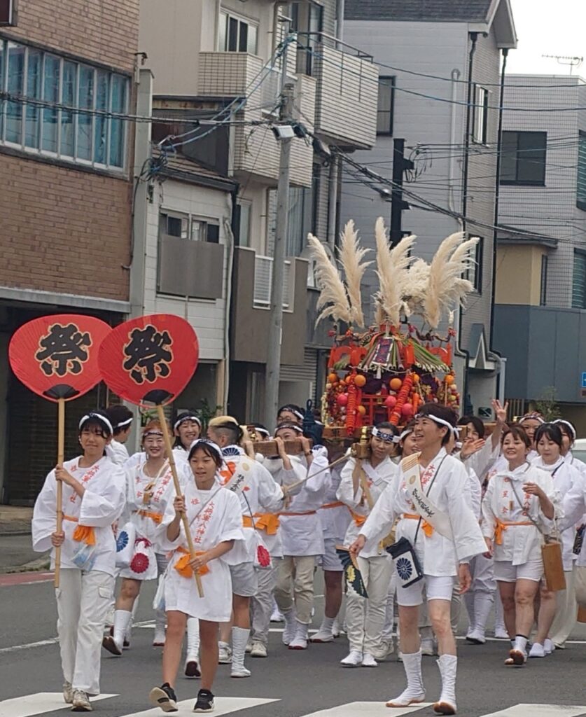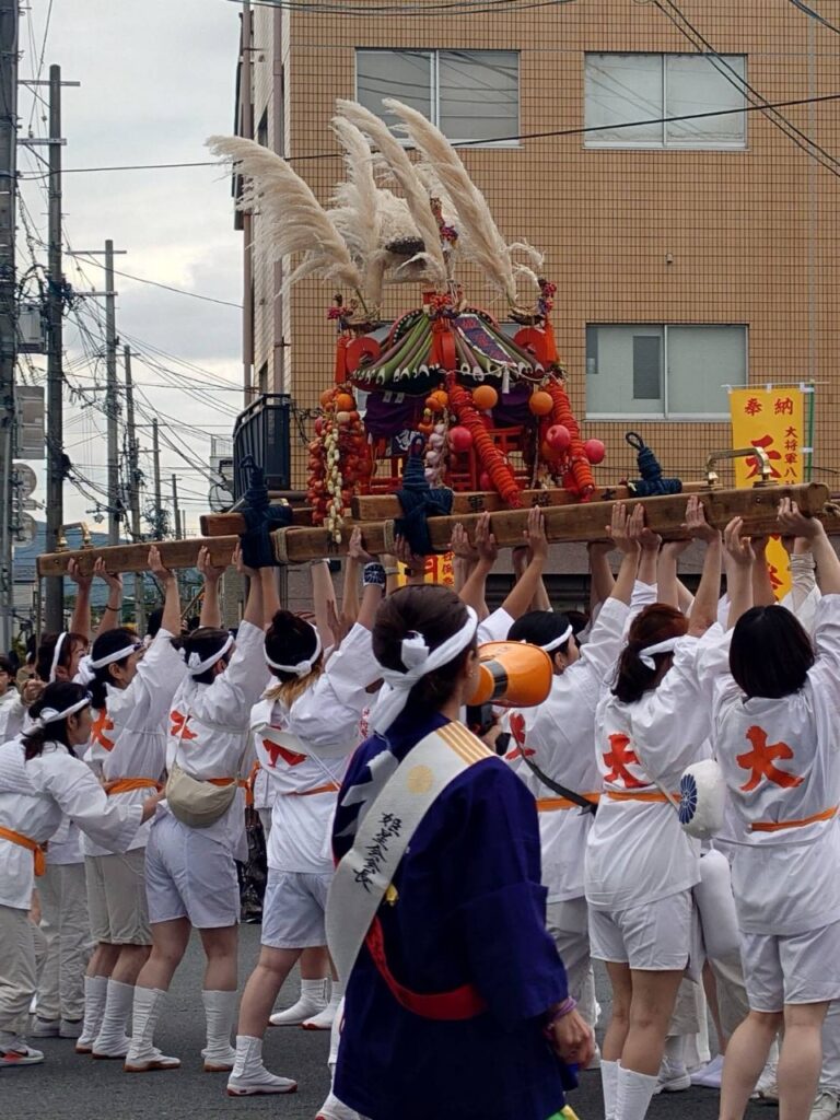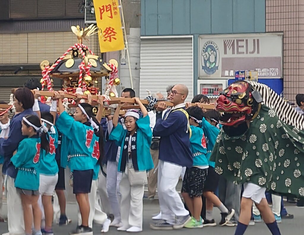天門祭では、江戸時代に造られた重厚な金神輿をはじめ、女神輿や子ども神輿が地域を巡行します。神輿は約150名の担ぎ手によって「ホイットー、ホイットー」という掛け声とともに巡行し、大将軍交差点で行われる迫力満点の「辻廻し」や「差し上げ」が最大の見どころです。