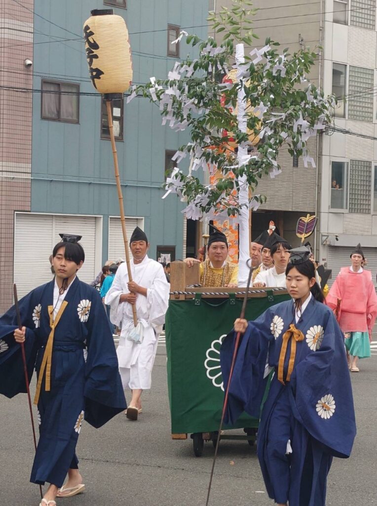 宵宮では、神社前から紙屋川まで約70メートルにわたって大蛇に見立てた「おろち餅神事」が執り行われ、小餅の配布や煎茶の無料接待、富くじ抽選会、地元児童館の舞や和太鼓など多彩な催しがあります。