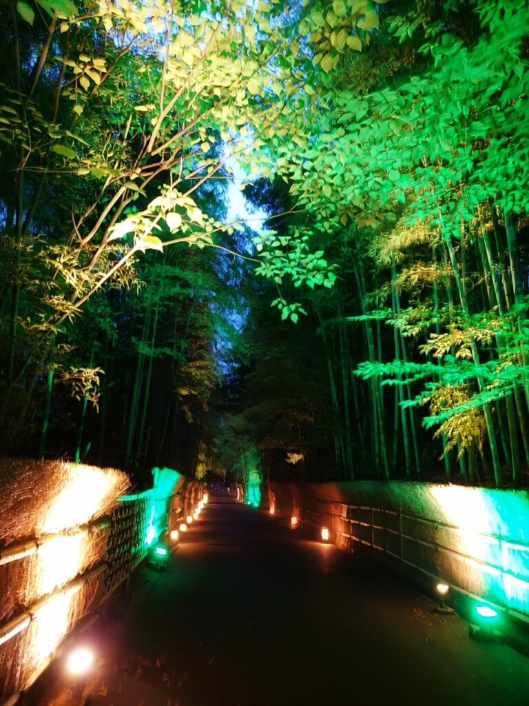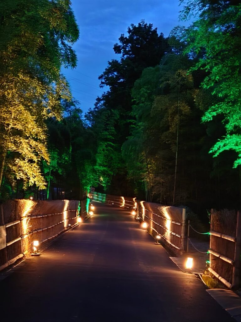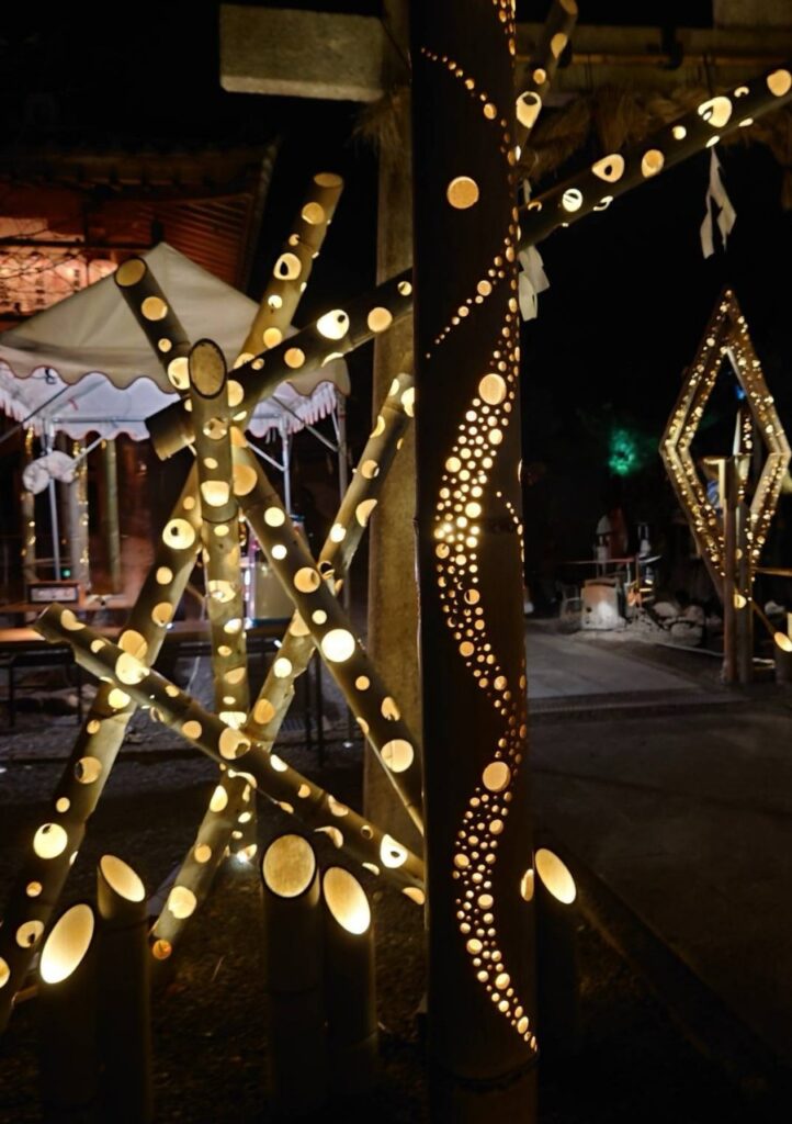 大歳神社の「西山竹灯り」は、京都西山の歴史と自然が息づく大歳神社を舞台に、放置竹林から作られた無数の竹あかりで境内を幻想的に照らす秋限定のライトアップイベントです。