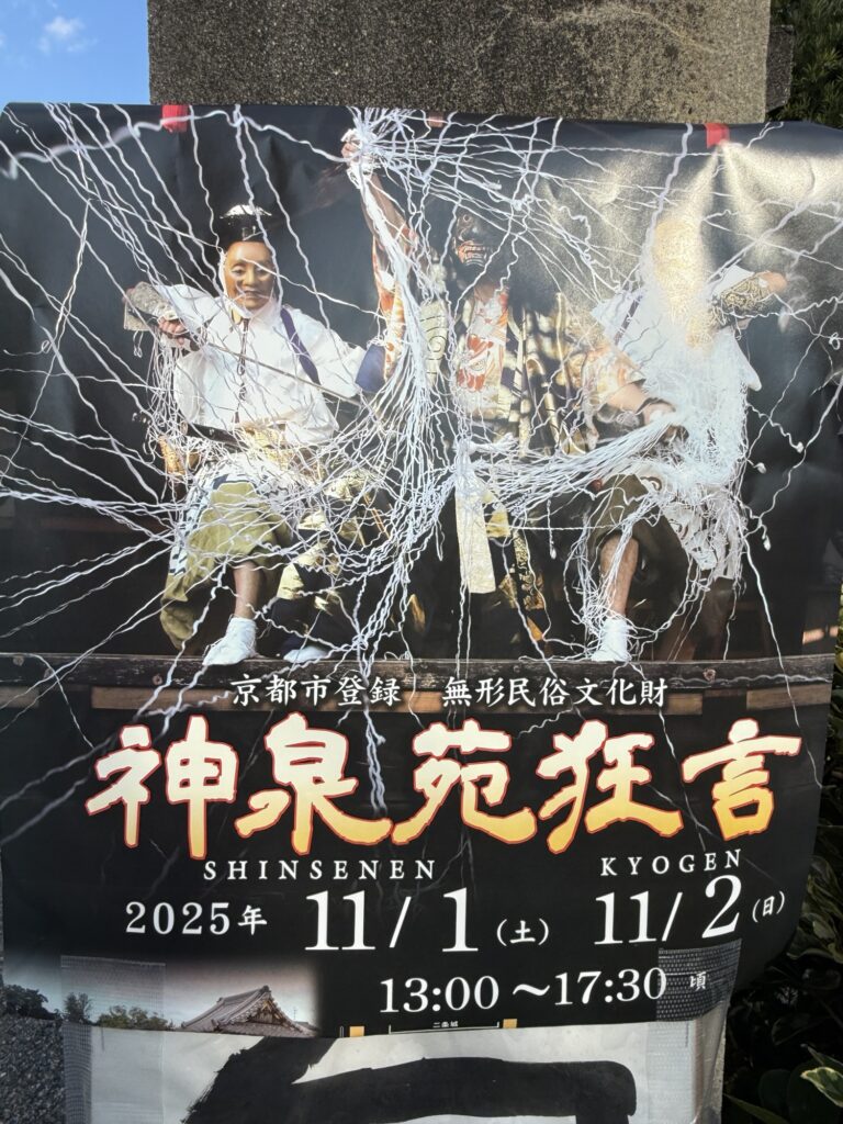 神泉苑で狂言を11/1、2とされていました。何度も訪れたことのある場所ですが、奥に舞台があることは知りませんでした。2025.11.1