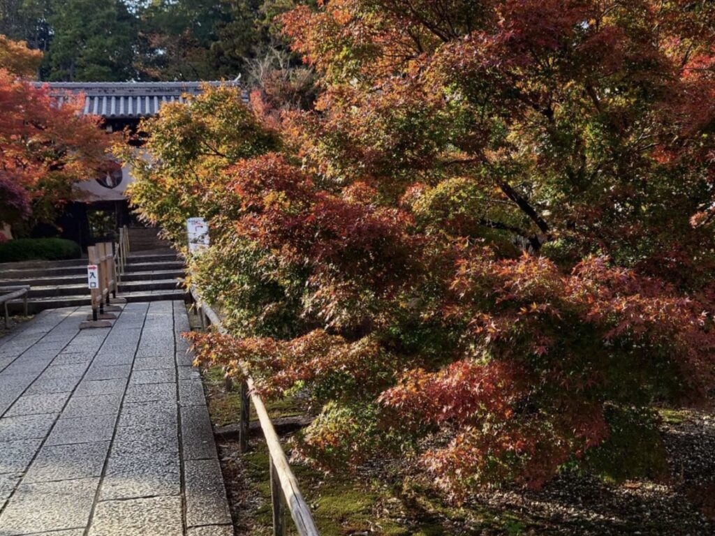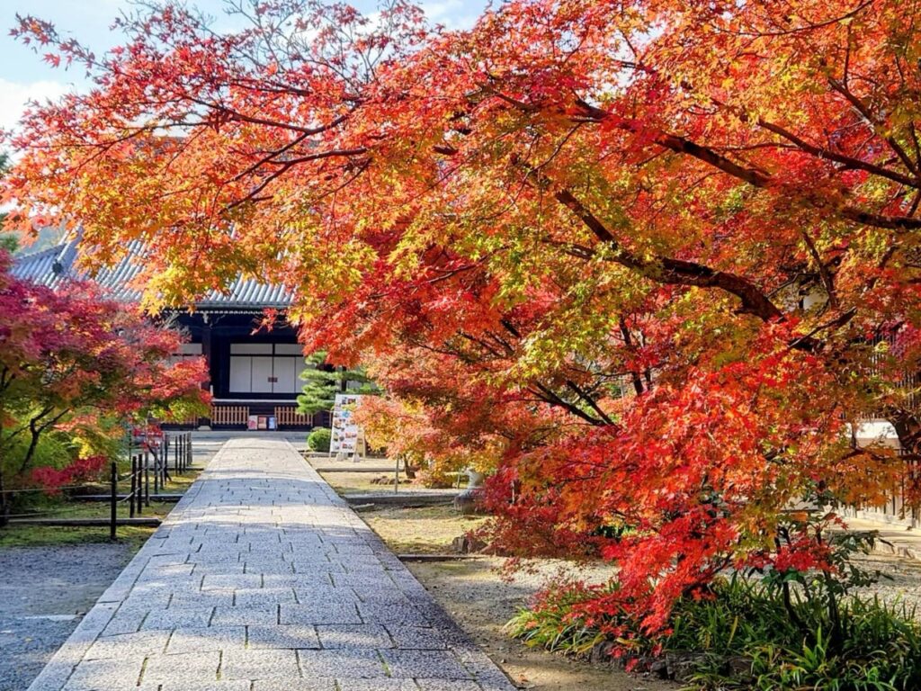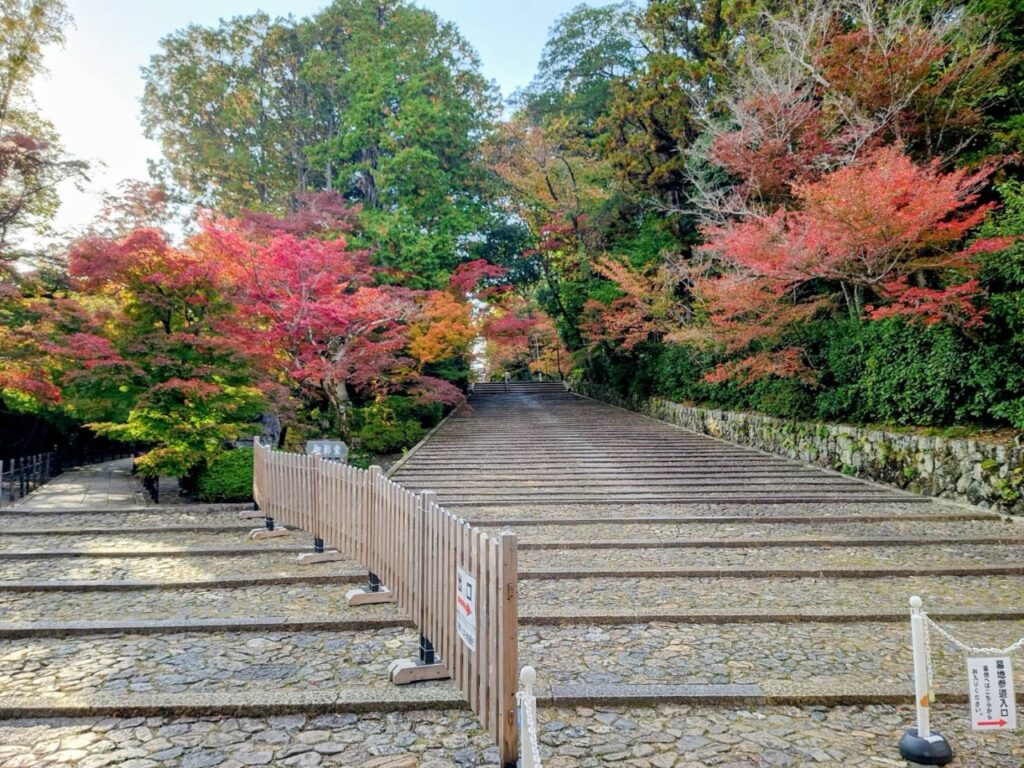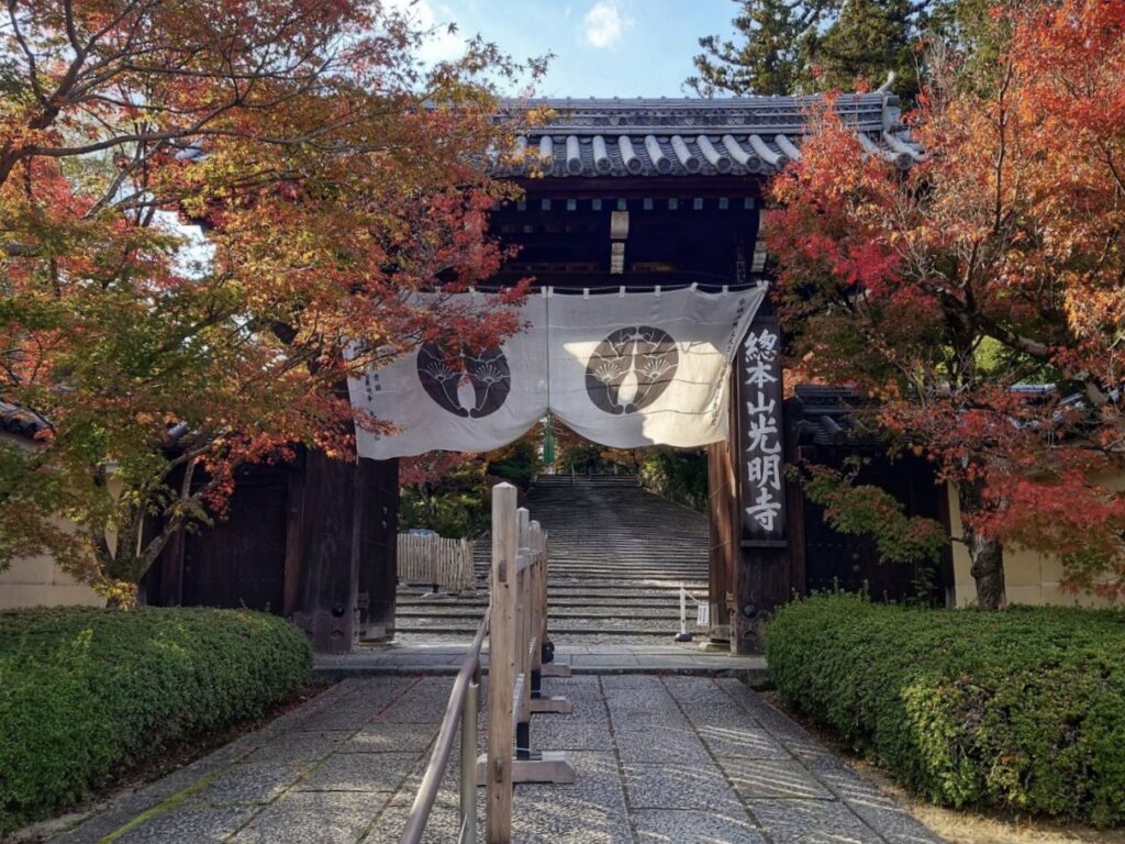 光明寺は西山浄土宗の総本山で、紅葉の名所として広く知られています。例年11月中旬から12月初旬に紅葉が見頃となり、境内の「もみじ参道」約200mに約250本のモミジが植えられ、紅色のトンネルが形成されます。この期間は「紅葉の特別入山」として通常非公開の庭園も公開されます。
