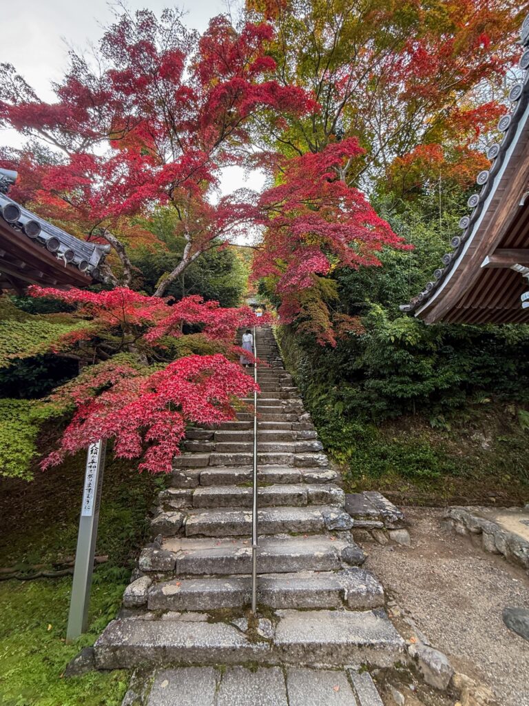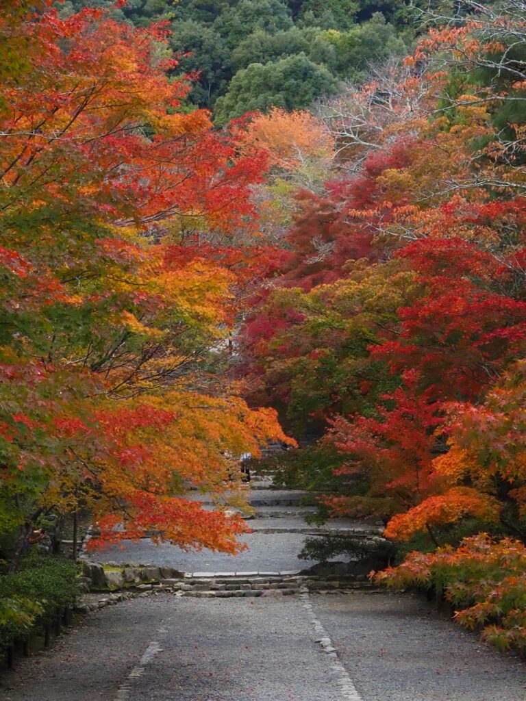 奥嵯峨で色づきが早く進んでいる二尊院。紅葉の馬場の一番色づきが進んでいます。真っ赤な時期も良さそうです♪