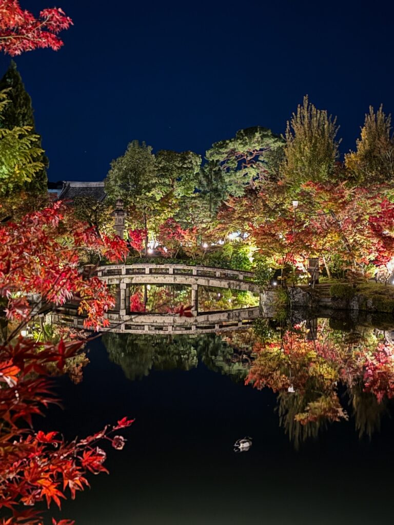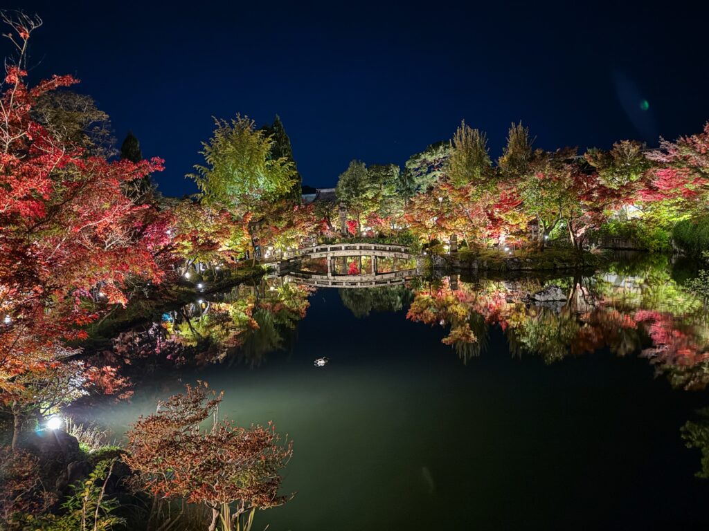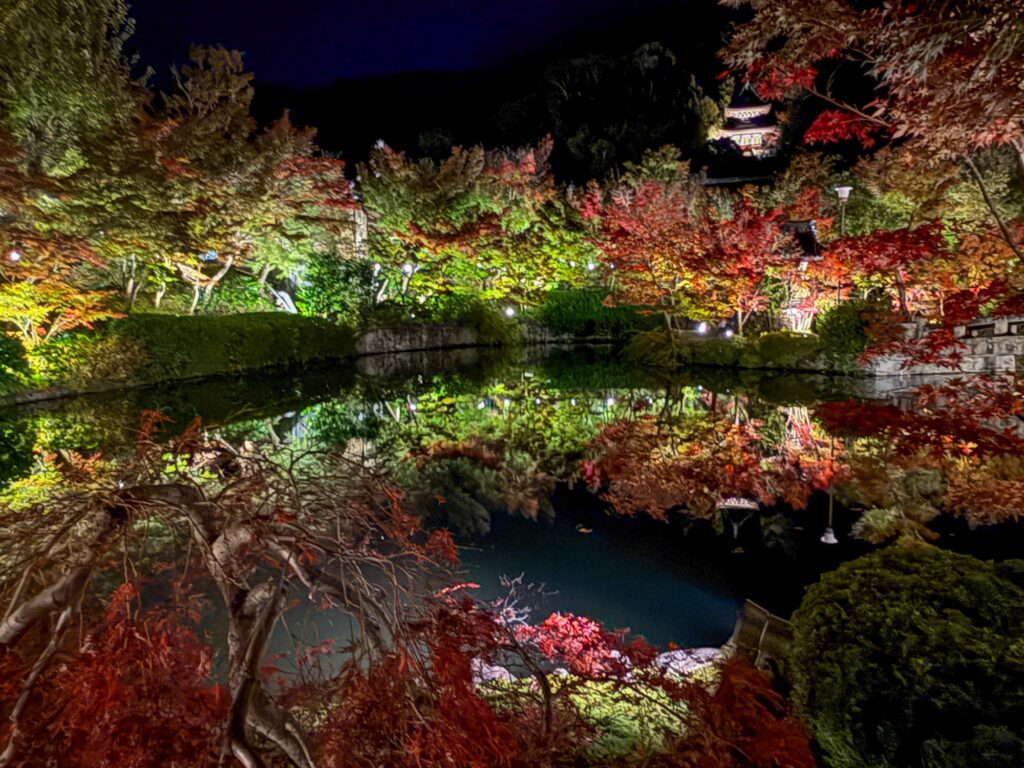 おでかけ京都2025年11月25日永観堂ライトアップ 訪れた日はライトアップ初日だったので人混みも幾分、空いていました。池周りは紅葉は進んでいますが、見頃まではもう少し時間がかかりそうです。2025.11.15