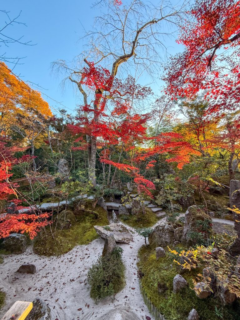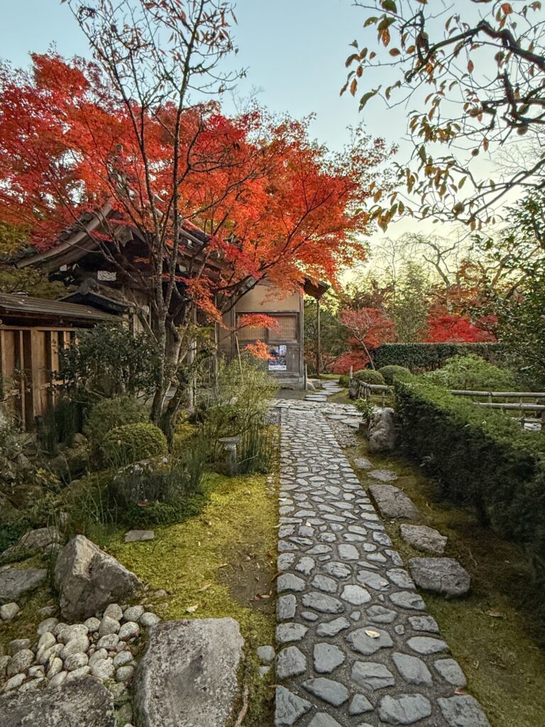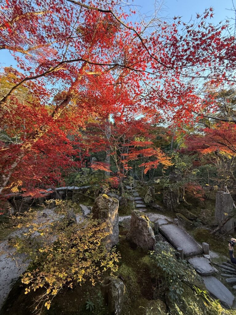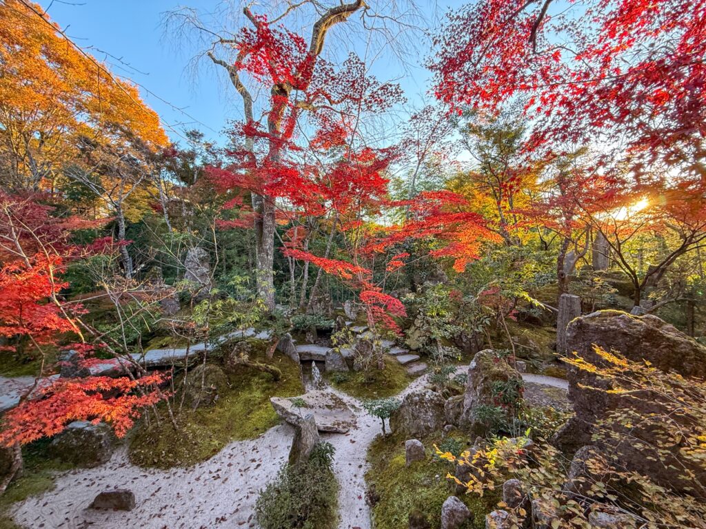 夕暮れ間近にギリギリに到着。この季節、お部屋から五葉松や竹を背景に夕陽と合わせてとても綺麗に見ることができます。2025.11.15