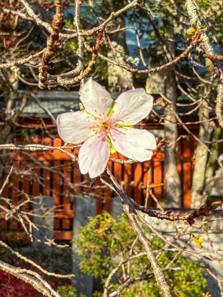 紅葉と寒桜が同時に見られるスポットでもありますが、今年はもう終わり?一輪だけ辛うじて見ることができました。