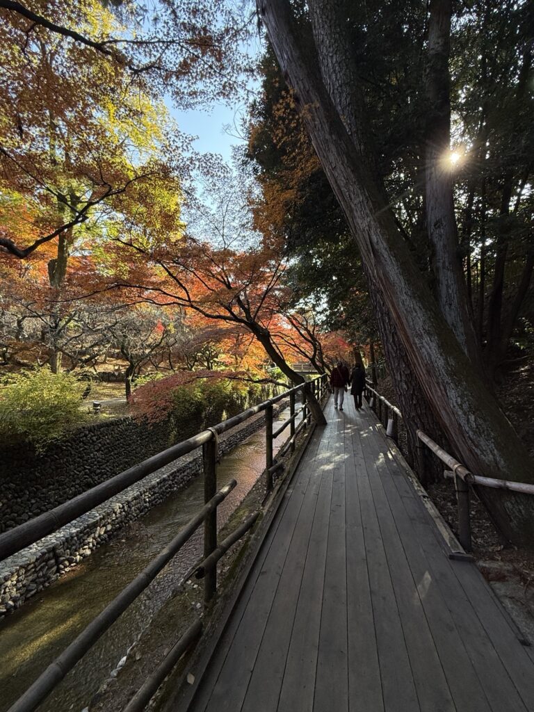 おでかけ京都2025年12月8日北野天満宮 もみじ苑 北野天満宮のもみじ苑は、豊臣秀吉が築いた史跡「御土居」一帯に広がる紅葉庭園です。紙屋川沿いに約350本のもみじが立ち並び、樹齢400年を超える古木も秋には鮮やかに色づきます。夜間にはライトアップもあります。 2025.11.30