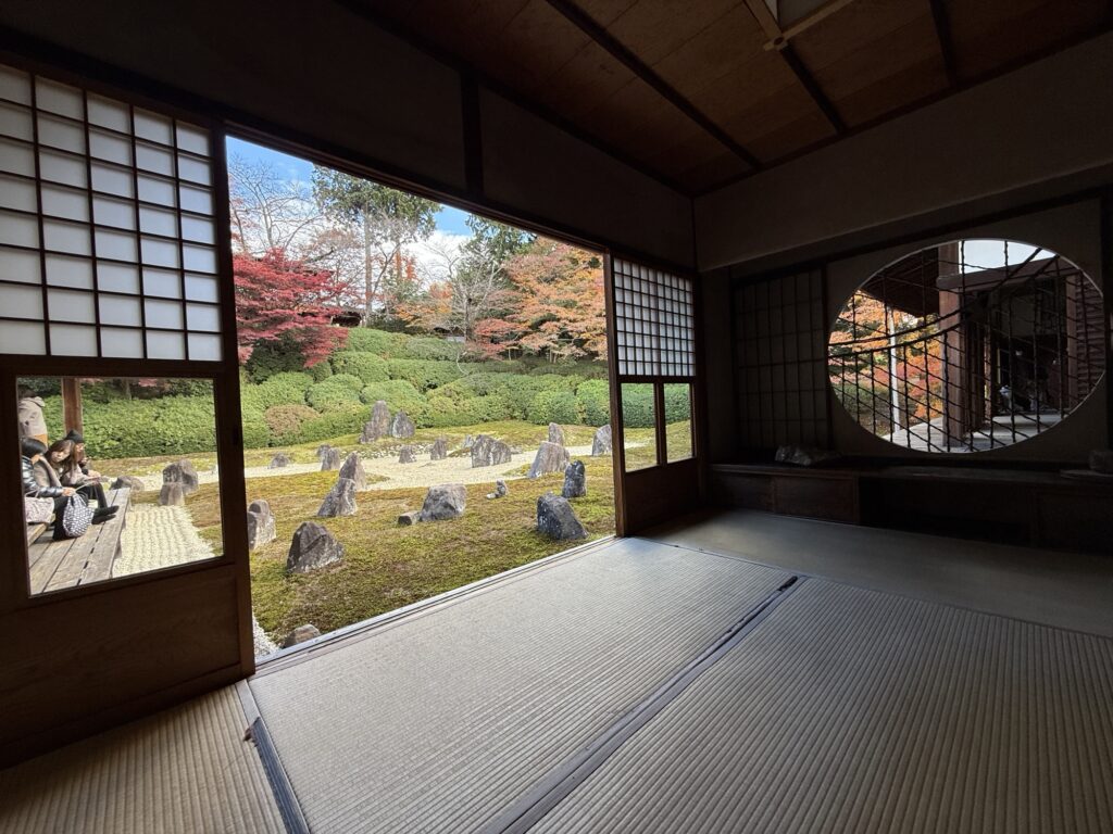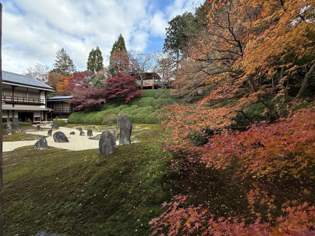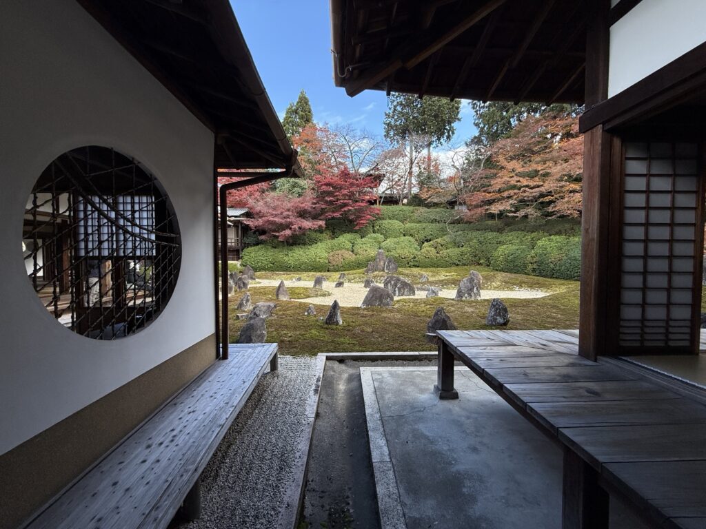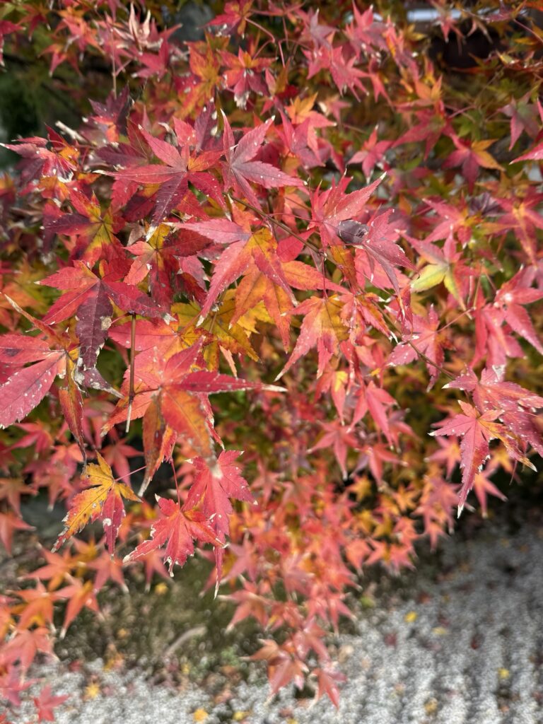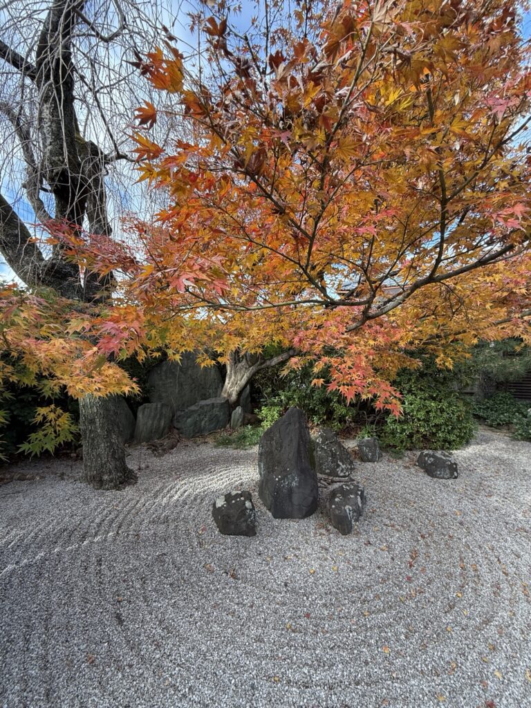 おでかけ京都2025年12月14日光明寺の紅葉 今年2回目の訪問。今回は散策サークルで立ち寄り。 東福寺光明院は、京都・東福寺の塔頭寺院で、重森三玲が昭和14年(1939年)に作庭した枯山水庭園「波心庭」が最大の見どころです。白砂と苔の間に石を配した庭は、四季折々の草木が彩りを添え、「虹の苔寺」と呼ばれる静かな名刹です。 2025.12.4