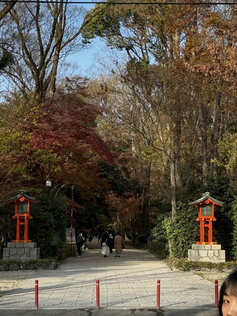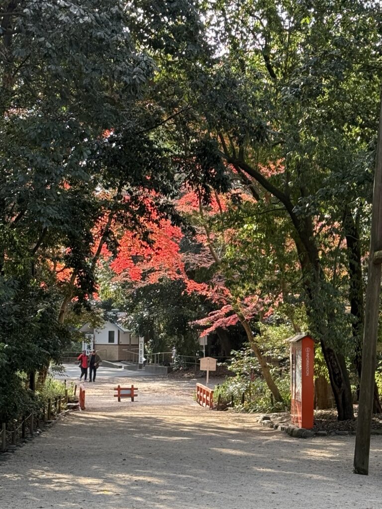 おでかけ京都2025年12月24日下鴨神社と周辺 京都市内で紅葉が遅いスポットの下鴨神社糺の森。今年は昨年より早く見頃を迎え、この辺りも例年より早い色づきのようです。 周辺の若い紅葉の木に葉がとても綺麗でした。 2025.12.11