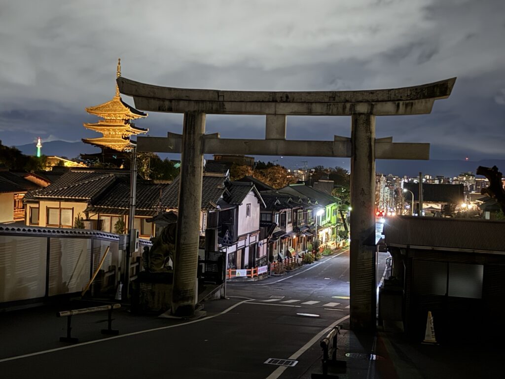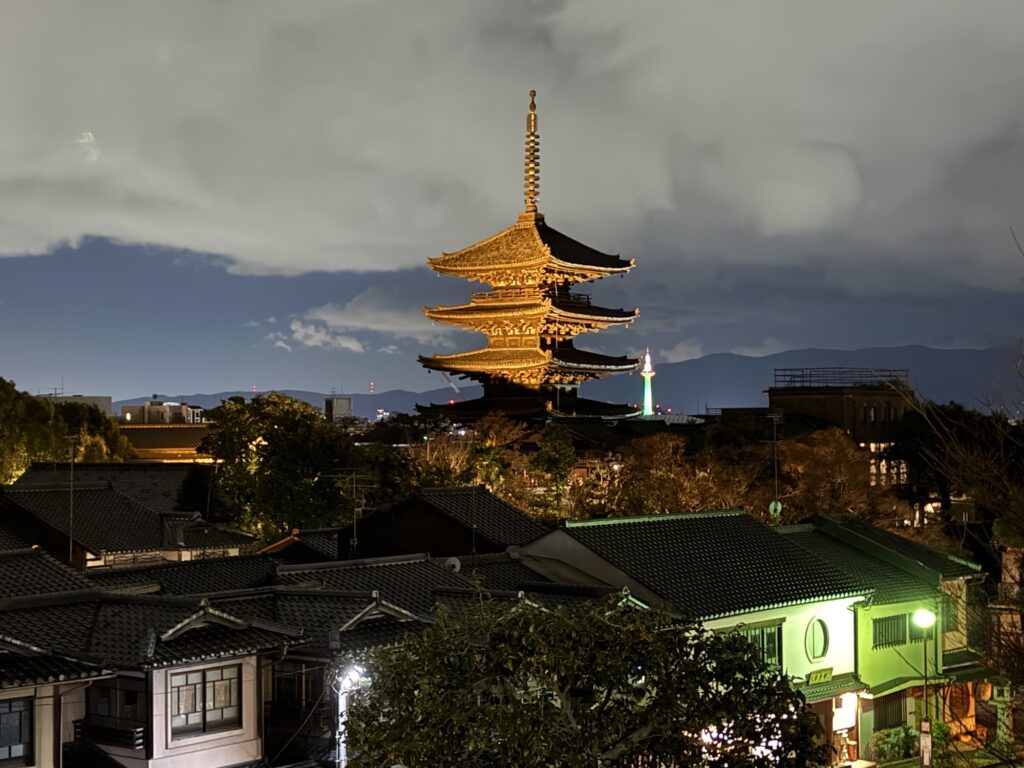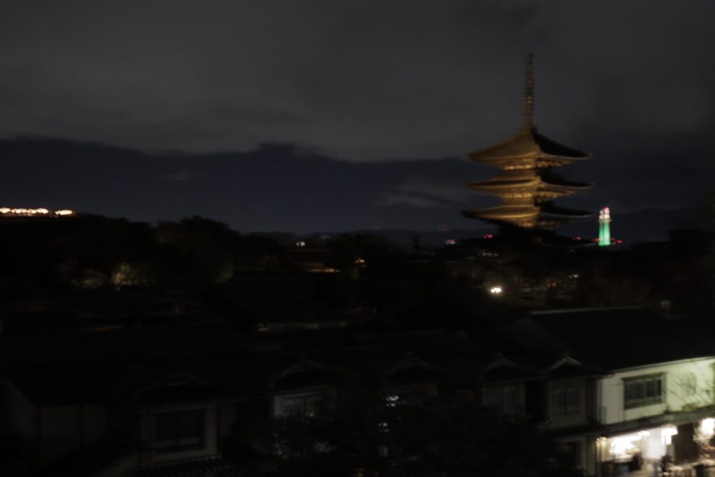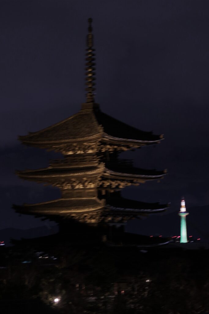 おでかけ京都2025年12月29日高台寺から 京都の東側にある高台寺方面から見た京都タワー。やはり、ツートンのカラーは見えず、一色のみ。 この時期の夜は人も少なく静かです。八坂の塔、八坂神社と周り、帰路につきました。 2025.12.24
